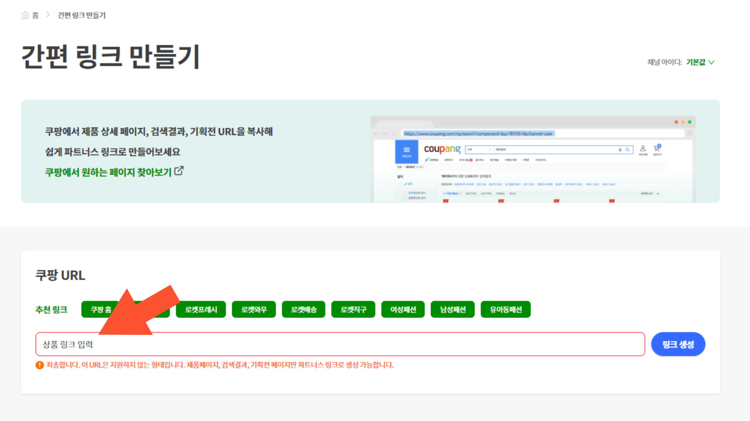 링크 생성은 쿠팡파트너스 사이트에서 할 수 있습니다.