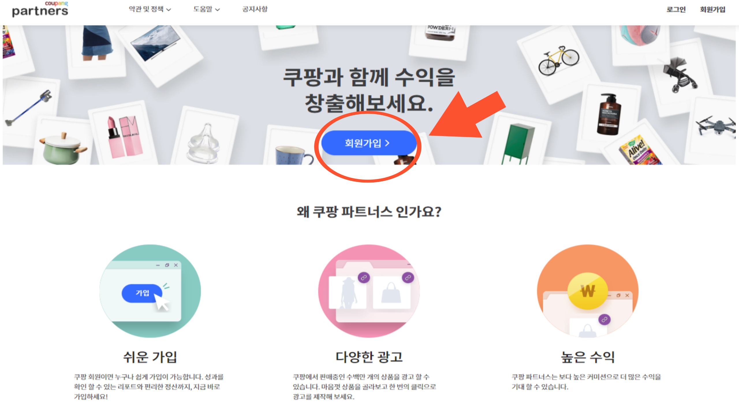 쿠팡파트너스 가입은 쿠팡파트너스 홈페이지에서 할 수 있습니다.