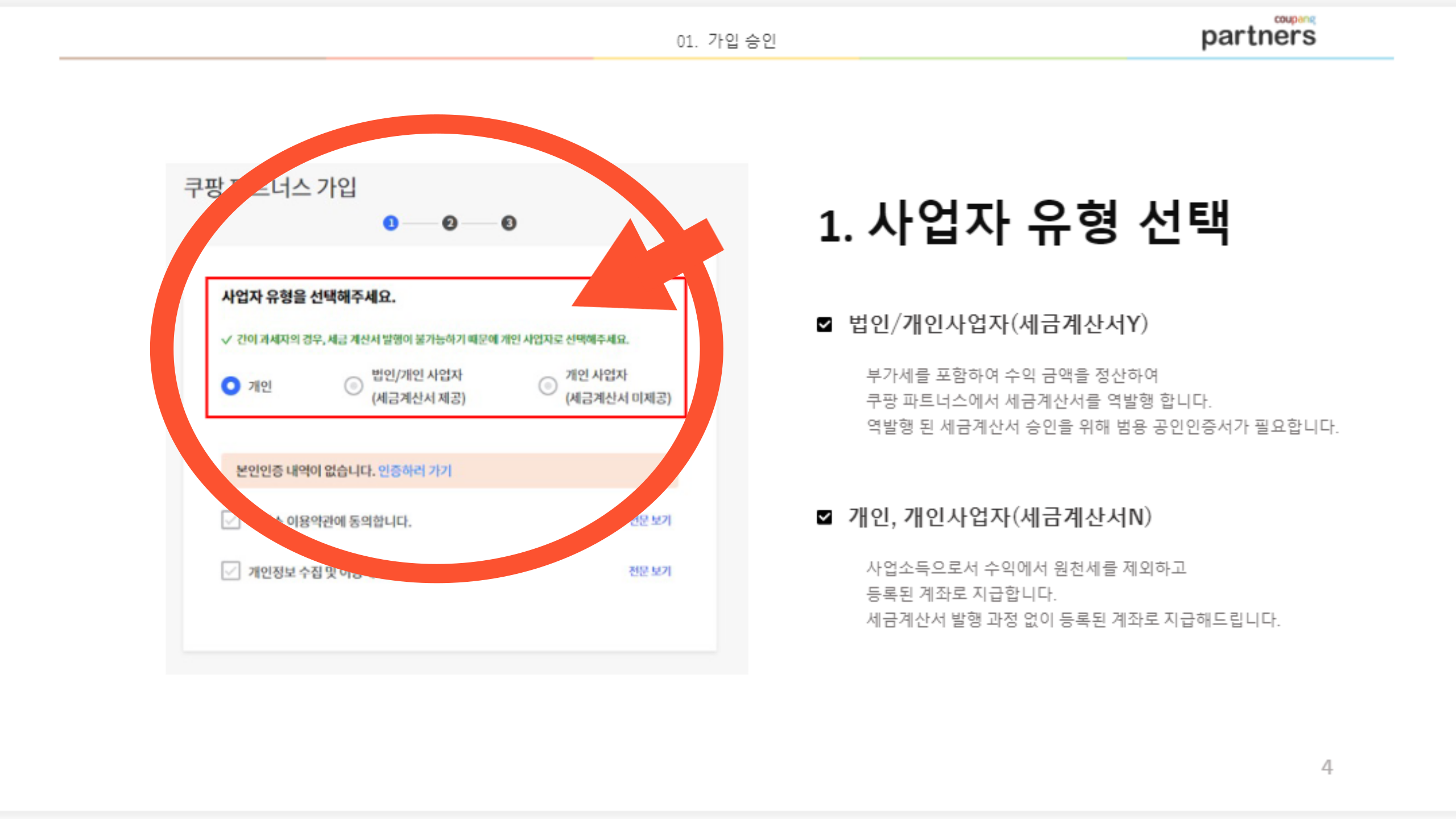 세금계산서 발행을 받을 수 있는 법인/개인사업자의 가입란과