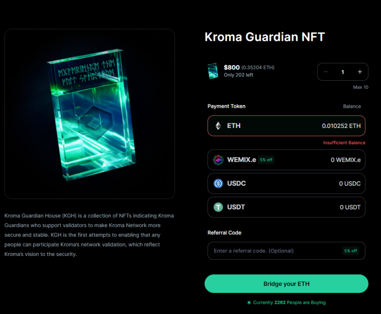 해당 이더리움을 크로마 네트워크로 브릿지한 이후 아래 링크에서 구매가 가능합니다.